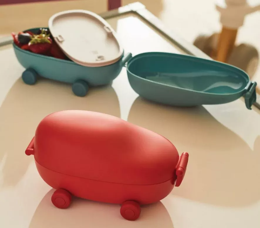 De Food à porter snack box van Alessi is ontworpen door Sakura Adachi. De snack box in de vorm van een auto is 20 centimeter lang, 11 centimeter breed en 10 centimeter hoog. De box heeft een inhoud van 60 centiliter. De trommel bestaat uit twee compartimenten gemaakt van thermoplastisch hars en is verkrijgbaar in verschillende kleuren.