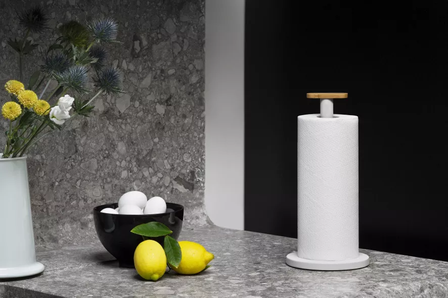 Mattina keukenrolhouder van Alessi is ontworpen door BIG-GAME studio. De houder heeft een diameter van 16 centimeter en is 33 centimeter hoog. De keukenrolhouder is gemaakt van staal gekleurd met epoxyhars en heeft een knop gemaakt van bamboehout. De Mattina keukenrolhouder is verkrijgbaar in verschillende kleuren.