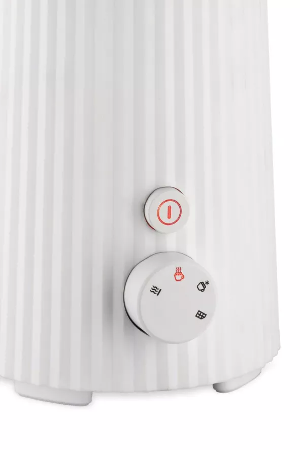 De Plissé melkopschuimer van Alessi heeft een diameter van 17 centimeter. De melkopschuimer is gemaakt van thermoplastisch hars en de mok is gemaakt van roestvrijstaal. Hij heeft verschillende standen waarmee hij de melk kan opschuimen. Ook heeft de melkopschuimer een stand waar je de melk koud mee kan opschuimen. De melkopschuimer van Alessi heeft een maximaal vermogen van 600W.