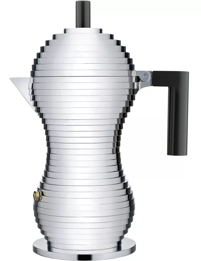 De Pulcina coffeemaker 30cl van Alessi is gemaakt van aluminium, en is daarnaast voorzien van kunststof details. Deze koffiezetter is 26 centimeter hoog en heeft een diameter van 12 centimeter. De Pulcina coffeemaker 30cl maakt genoeg koffie om zes kopjes mee te vullen.