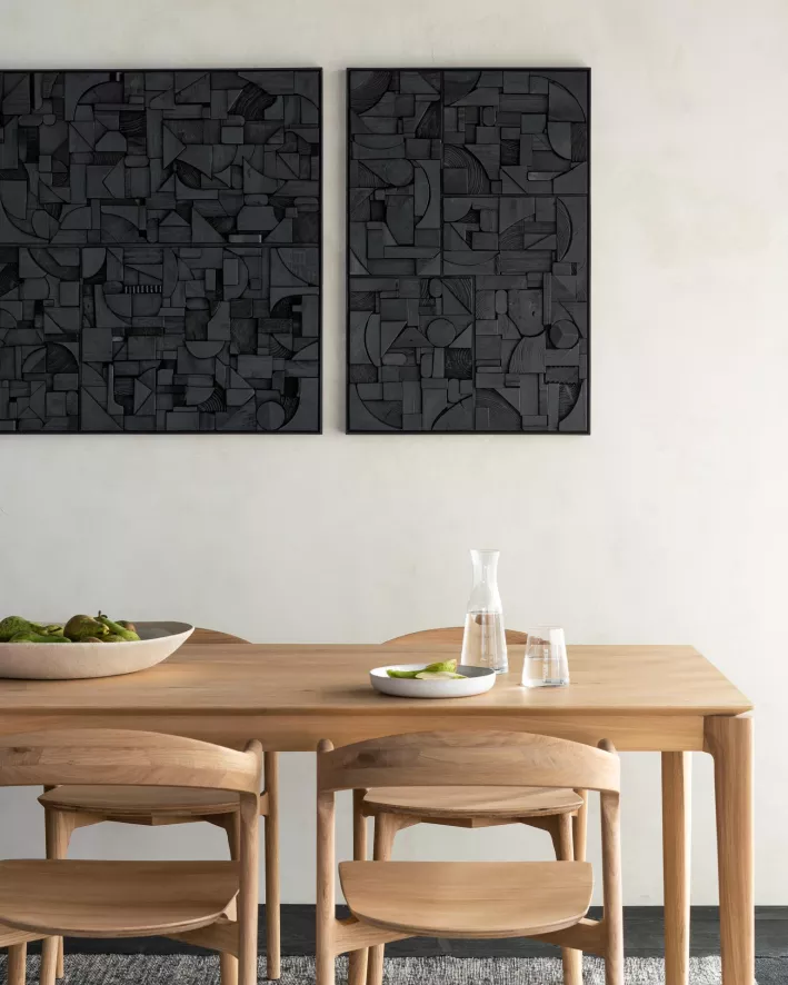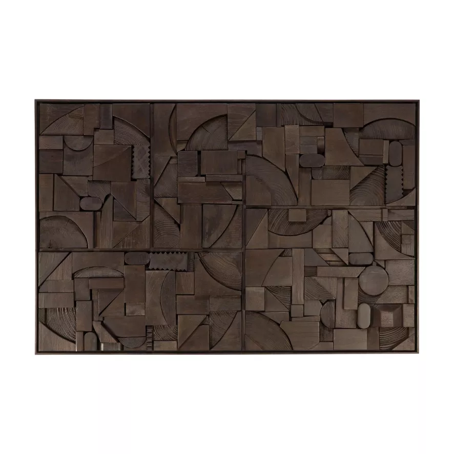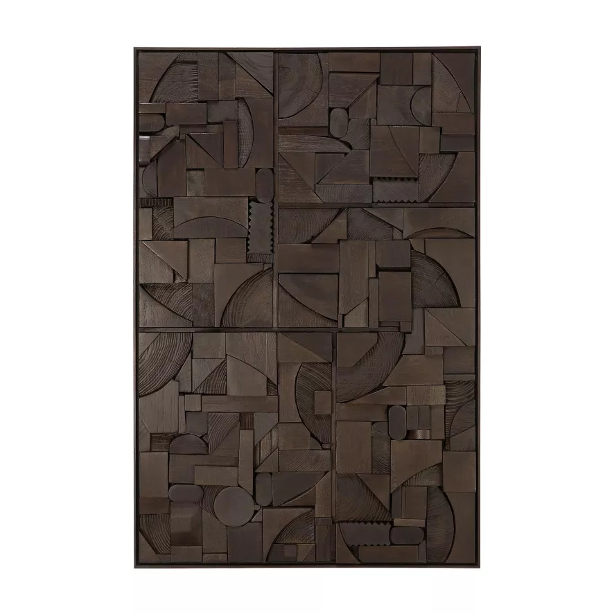 De Bricks wanddecoratie 90×60 van Ethnicraft heeft een breedte van 90 centimeter, een diepte van 4 centimeter en een hoogte van 60 centimeter. De wanddecoratie heeft een lijst van massief walnoothout. Het kunstwerk is gemaakt van gerecycled massief hout en productierestanten.