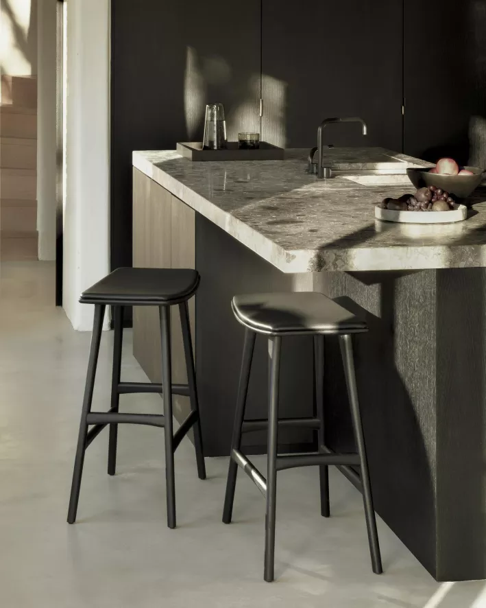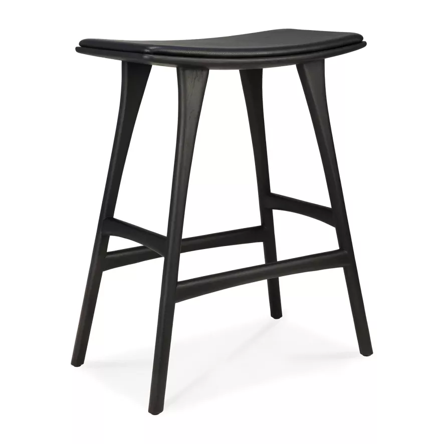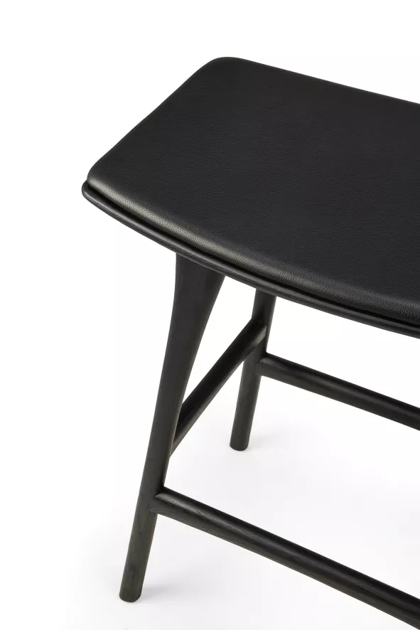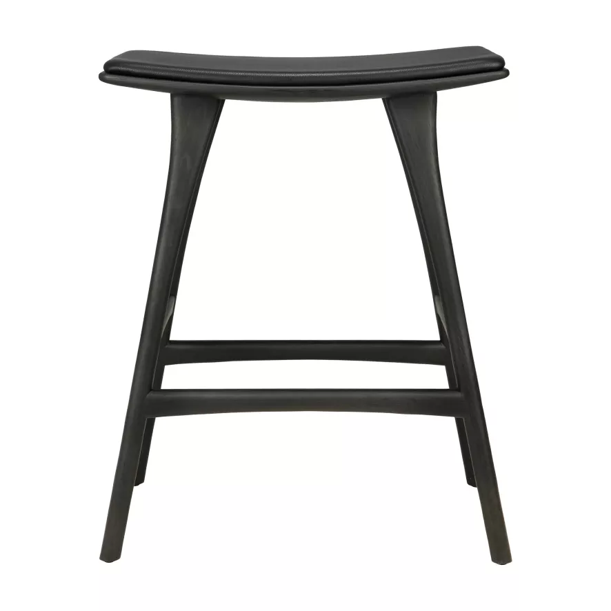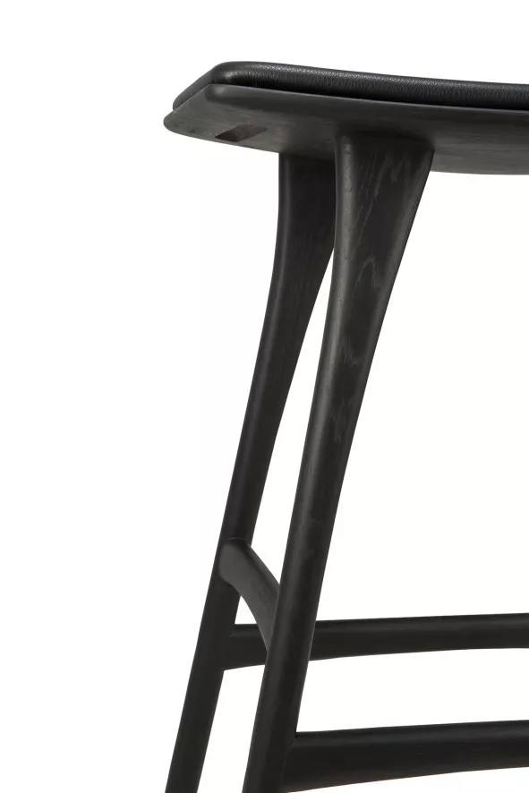 De Osso barkruk 67 gestoffeerd van Ethnicraft heeft een breedte van 57 centimeter, een diepte van 33 centimeter en een hoogte van 69 centimeter. Deze barkruk heeft een zithoogte van 67 centimeter. De barkruk is gemaakt van FSC-gecertificeerd, massief eikenhout en is met een olie afgewerkt. De zitting van de barkruk is bekleed met cognac leer. De kruk heeft een gewicht van 6 kilogram en heeft een maximum draaggewicht van 135 kilogram. De Osso barkruk 67 gestoffeerd van Ethnicraft is in verschillende uitvoeringen verkrijgbaar en is alleen geschikt voor gebruik binnenshuis.