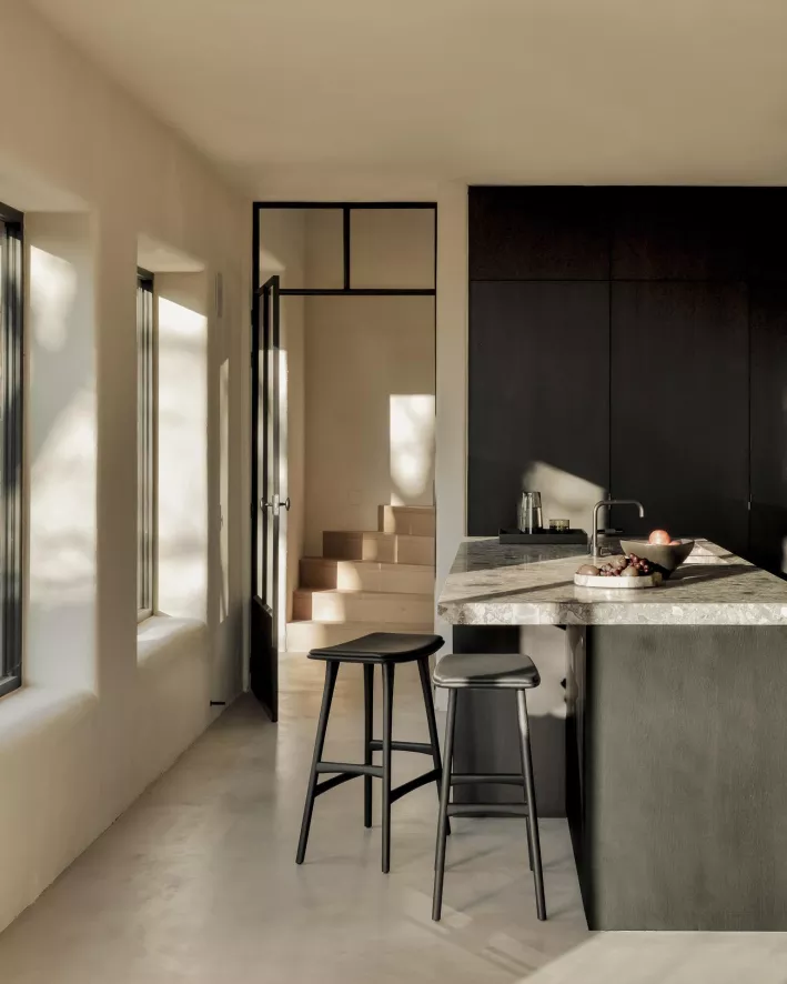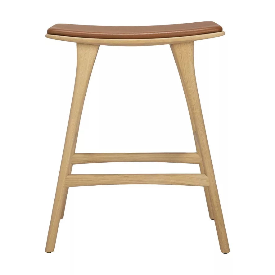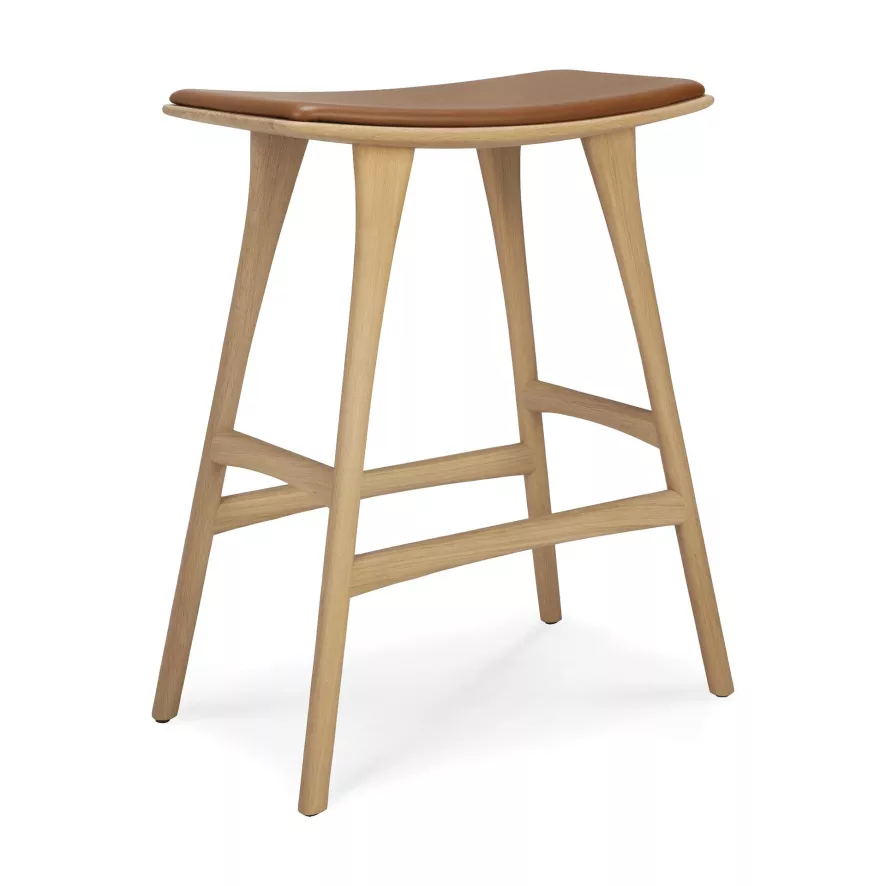 Ethnicraft Osso Barkruk 67 Gestoffeerd Eiken Geolied Cognac Leer