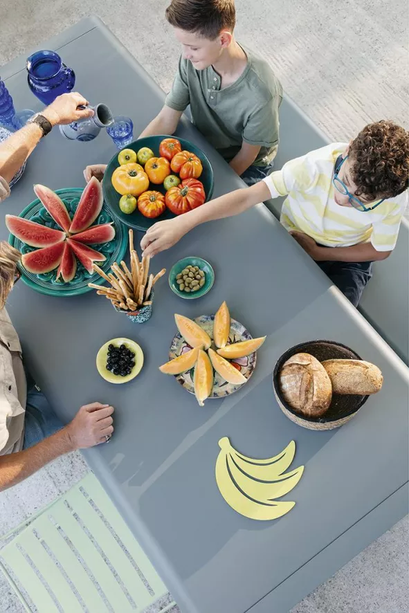 De Fermob Bellevie tuintafel is ontworpen door Pagnon & Pelhaître. De tafel is 74 centimeter hoog, 196 centimeter breed en 90 centimeter diep. De tafel is gemaakt van lichtgewicht aluminium, wat bedekt is met een sterke beschermlaag. Hierdoor is de tafel bestand tegen allerlei weersomstandigheden en beschermd tegen UV-straling. Je kan de Fermob Bellevie tuintafel bestellen in 26 verschillende kleuren.