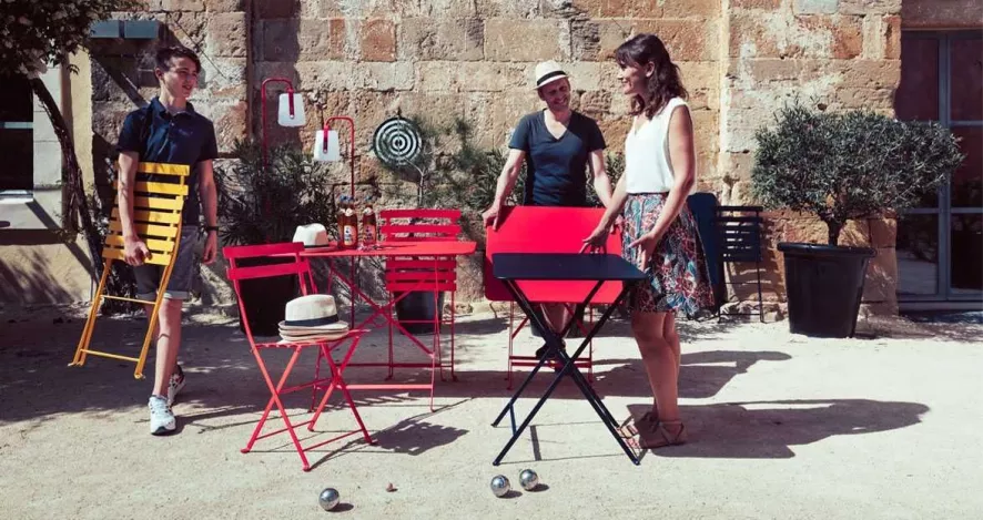 De Fermob Bistro tuintafel is 74 centimeter hoog, 97 centimeter breed en 57 centimeter diep. De tafel is inklapbaar en weegt 10 kilo. In het midden van de tafel zit een opening voor de parasol, met een diameter van 4,1 centimeter. De Bistro tuintafel van Fermob is gemaakt van gelakt staal, behandeld met een speciale lak voor bescherming tegen het weer. Ook zit er een anti-UV poedercoating laag op de tuintafel. De Fermob Bistro tuintafel is verkrijgbaar in veel verschillende kleuren.