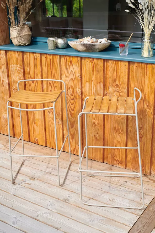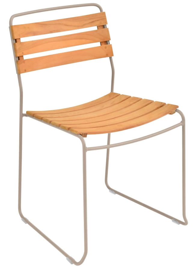 De Surprising Teak tuinstoel van Fermob is 81 centimeter hoog en 44 centimeter breed. De poten zijn 50 centimeter breed en de zithoogte is 48 centimeter. Het frame van de stoel is van staal, het zitvlak en de rugleuning van natuurlijk, ongeolied teakhout. De stoel is verkrijgbaar in verschillende kleuren.
