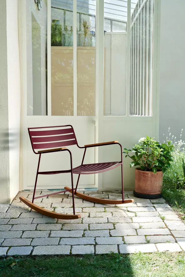 De Surprising schommelstoel van Fermob is ontworpen door Harald Guggenbichler. De stoel is 69 centimeter breed, 89 centimeter diep en 76 centimeter hoog. De schommelende fauteuil heeft een zithoogte van 43 centimeter, een armleuninghoogte van 18 centimeter en een gewicht van 8,28 kilogram. De basis onder de poten en de armleuningen zijn gemaakt van teakhout. Het frame, de zitting en de rugleuning zijn gemaakt van staal. De schommelstoel is verkrijgbaar in verschillende kleuren.