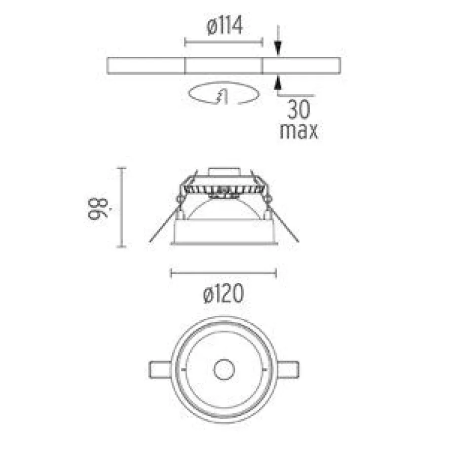 De Wan inbouwspot van Flos heeft een diameter van 12 centimeter en een hoogte van 8,6 centimeter. De inbouwafmetingen zijn 8,6 cm hoog en een diameter van 11,4 cm. De Wan inbouwspot is verkrijgbaar in de kleuren wit, gepolijst aluminium, zwart en groen.