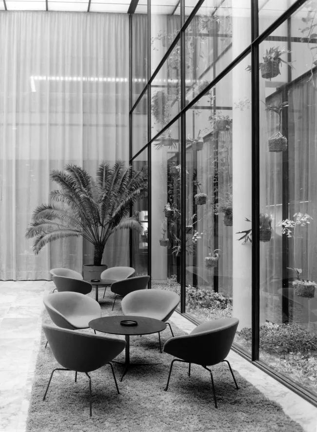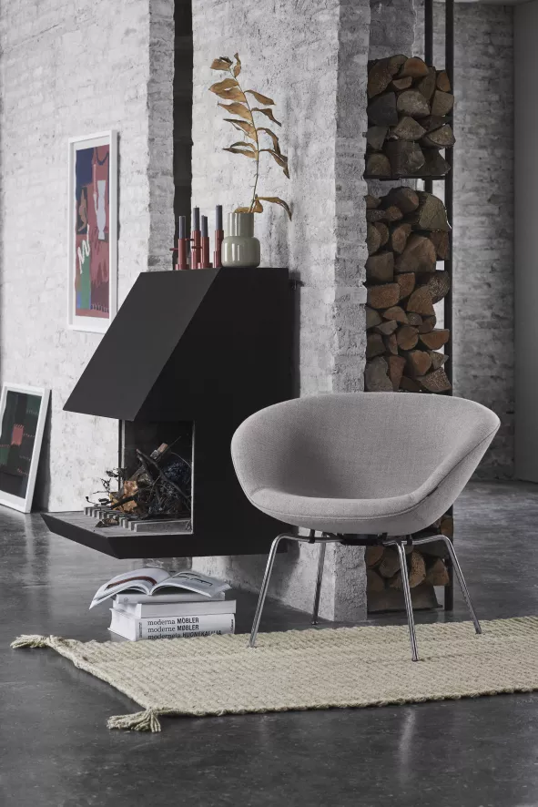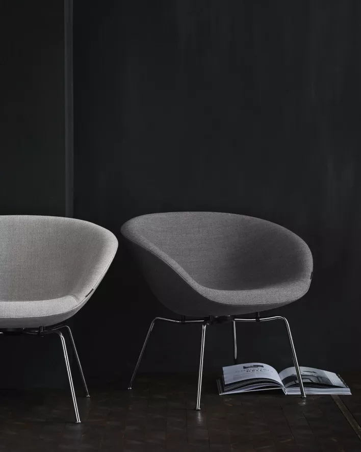 De Fritz Hansen Pot fauteuil chrome is ontworpen door Arne Jacobsen.
