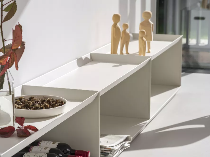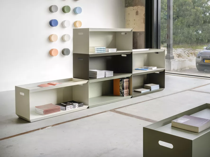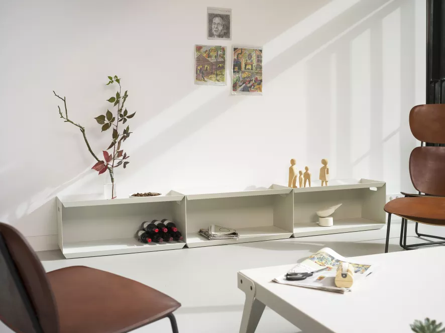 De Ossa kast van Functionals heeft een lengte van 90 centimeter, een breedte van 36,5 centimeter en een hoogte van 41 centimeter. De kast is gemaakt van gepoedercoat staal.