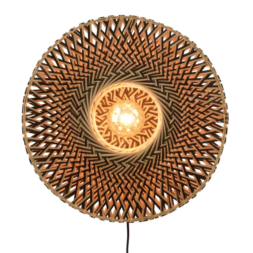 De Bali wandlamp large heeft een diameter van 87 centimeter en is 23 centimeter diep. De lamp heeft een E27 fitting, geschikt voor een lichtbron met een maximaal wattage van 60. De lamp is gemaakt van bamboe en staal en is beschikbaar in diverse maten.