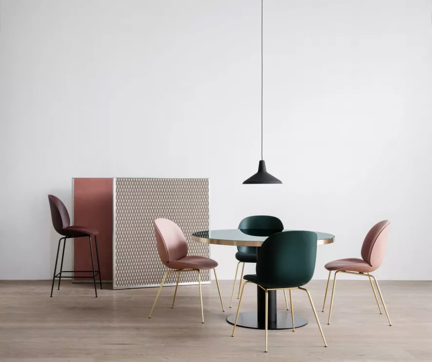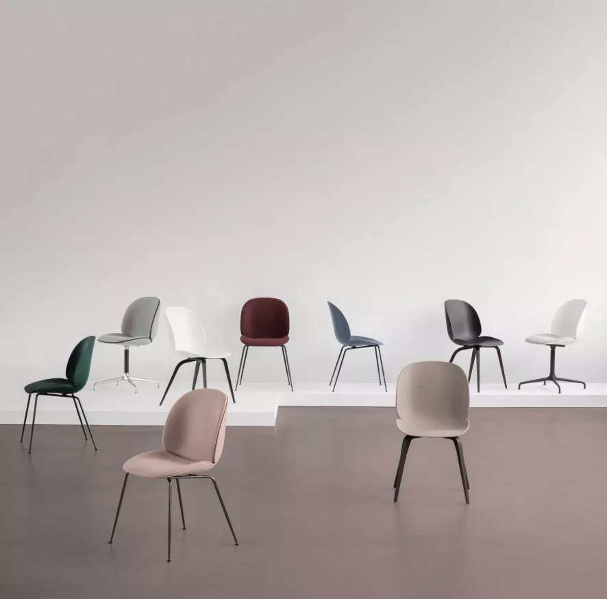 De Gubi Beetle Conic stoel met zitkussen is ontworpen door GamFratesi.