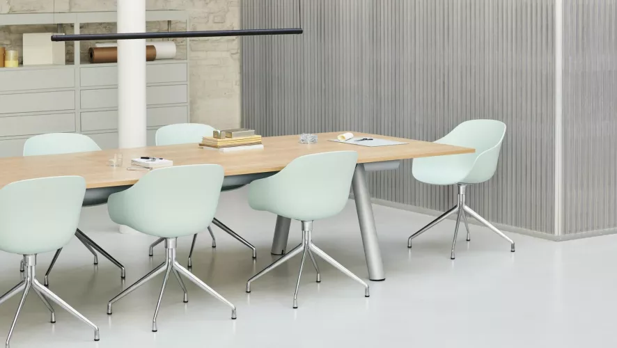 Hay Boa Tafel 350×128 Metallic Grey Frame,linoleum Blad