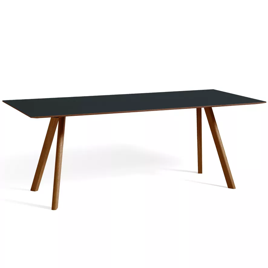 De Copenhague CPH30 tafel 200×90 gelakt walnoot van HAY heeft een lengte van 200 centimeter, een breedte van 90 centimeter en een hoogte van 74 centimeter. De tafel heeft een onderstel van FSC-gecertificeerd, massief walnotenhout dat met een lak op waterbasis is afgewerkt. Het tafelblad is gemaakt van linoleum en heeft een rand van walnotenhout dat met een lak op waterbasis behandeld is. Deze tafel is geschikt voor zes personen. De Copenhague CPH30 tafel 200×90 gelakt walnoot van HAY is in verschillende formaten en uitvoeringen verkrijgbaar.