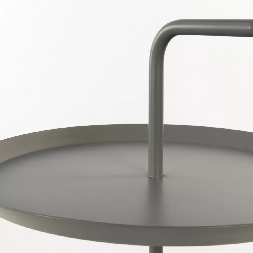 Het tafelblad van de Hay DLM bijzettafel heeft een diameter van 38 centimeter en een hoogte van 44 centimeter. Met handvat bedraagt de hoogte 58 centimeter. De bijzettafel is gemaakt van gepoedercoat staal. De bijzettafel van Hay is leverbaar in verschillende kleuren. Er is ook een grote variant leverbaar, de DLM XL bijzettafel.