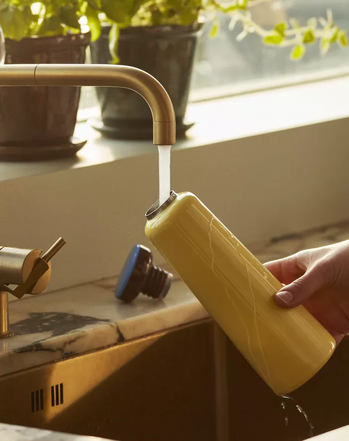 De Snowden Bottle van Hay is verkrijgbaar in een 0,35 liter variant en een variant met een inhoud van 0,5 liter. De Snowden Bottle is gemaakt van roestvrijstaal en polypropyleen. Je kunt voor de fles uit verschillende kleuren kiezen.