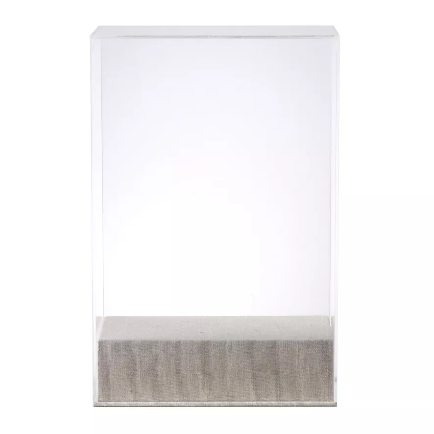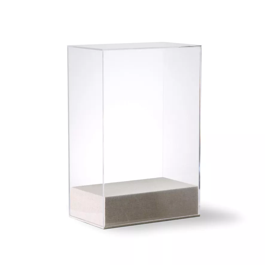 De Acrylic Display stolp van HKliving heeft een lengte van 20 centimeter, een breedte van 12 centimeter en een hoogte van 30 centimeter. De stolp wordt gemaakt van Acrylglas en linnen en weegt 750 gram. HKliving raadt aan de stolp alleen te reinigen met een droge doek. De Acrylic Display stolp is alleen geschikt voor decoratief gebruik.
