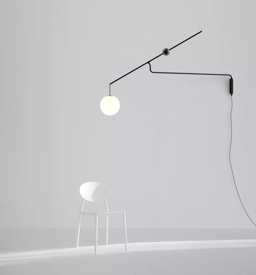 De Malamata wandlamp zwart van Luceplan is ontworpen door Studio Shulab. De lamp heeft een breedte van 152 centimeter en een diepte van 22 centimeter. De opalen diffuser heeft een diameter van 22 centimeter. De bovenste arm van het armatuur is 126 centimeter lang. De Malamata wandlamp is gemaakt van staal en geblazen opaalglas. In de lamp zit een E14 fitting, geschikt voor een LED lichtbron met een maximale diameter van 40 millimeter. De lichtbron wordt niet meegeleverd. Malamata is voorzien van een ingebouwde dimmer. De wandlamp is beschikbaar in diverse kleuren.