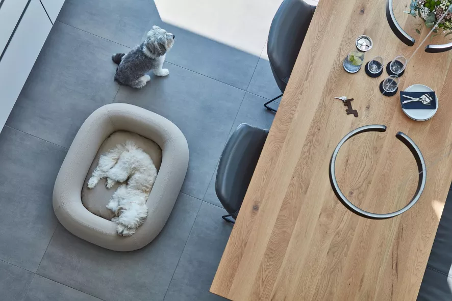 De MiaCara Barca hondenmand medium/large is ontworpen door Hans Thyge & Co. De Barca hondenmand medium/large van MiaCara heeft een lengte van 113 centimeter, een breedte van 93 centimeter en een hoogte van 24 centimeter. De hondenmand heeft een afneembare, wasbare hoes van Polyester Trevira CS die met stoom gereinigd mag worden of in de wasmachine tot 60 graden Celsius gewassen mag worden. Na het reinigen dient de hoes aan de lucht gedroogd worden. De hoes mag niet in de droogtrommel maar mag wel op lage temperatuur gestreken worden. De mand heeft een binnen kussen van katoen en polyester en is opgevuld met stabiel, duurzaam, hypoallergeen en elastisch polyurethaanvulling. De zijkanten van de mand zijn gemaakt van polyurethaan en koud schuim en zijn waterafstotend. Hierdoor kun je deze het beste met een vochtige doek afnemen. Deze hondenmand is geschikt voor Berner Sennenhonden, Boxers, Golden Retrievers, Husky’s, Labradors, Rhodesian Ridgebacks, Ierse setters, Weimarse staande honden, Magyar Vizsla’s en andere middelgrote tot grote hondenrassen. De Barca hondenmand medium/large van MiaCara is in verschillende kleuren en formaten verkrijgbaar.