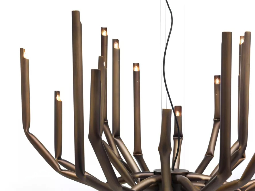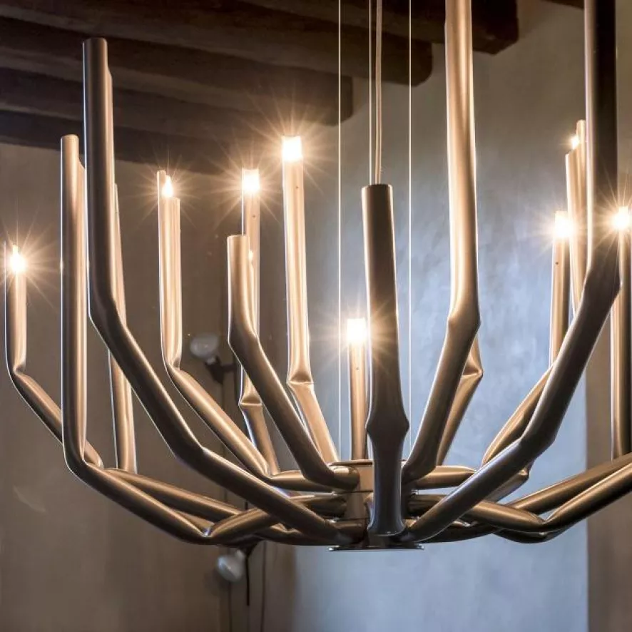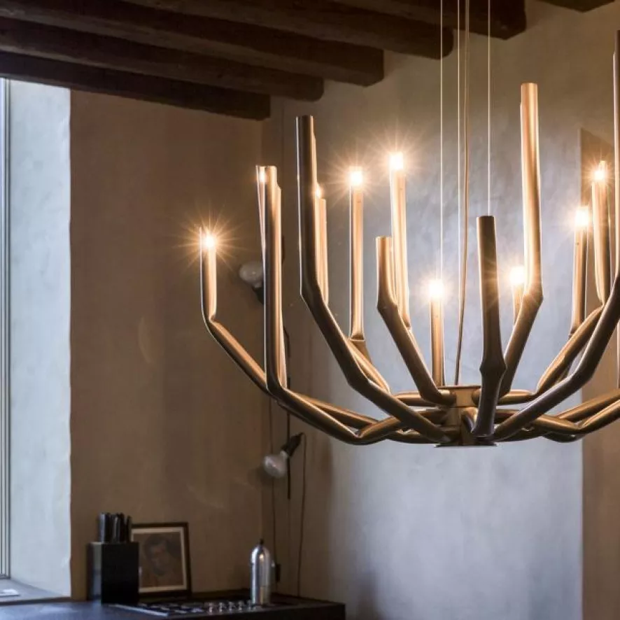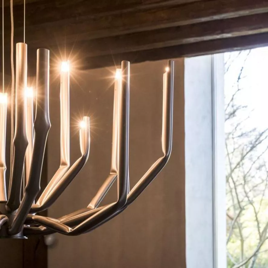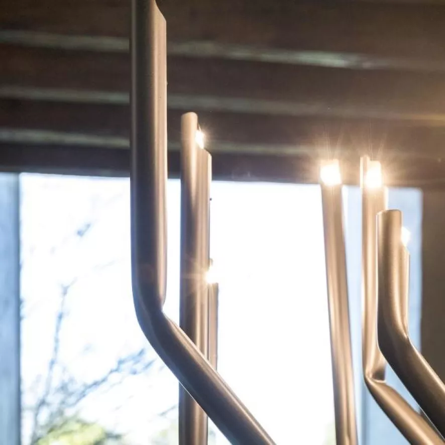 De To_be kroonluchter large van Mogg is ontworpen door Studio 14 in 2017. De kroonluchter bestaat uit 18 ijzeren armen die mechanisch gebogen zijn, met een gepolijste afwerking. De kroonluchter heeft een diameter van 101 centimeter en een hooge van 75 centimeter. Iedere arm heeft een G9 fitting, geschikt voor een (LED) lichtbron van maximaal 60 Watt. De lichtbronnen worden niet meegeleverd. De kroonluchter weegt 18 kilo.