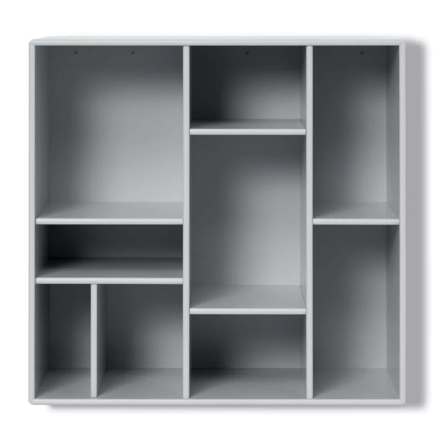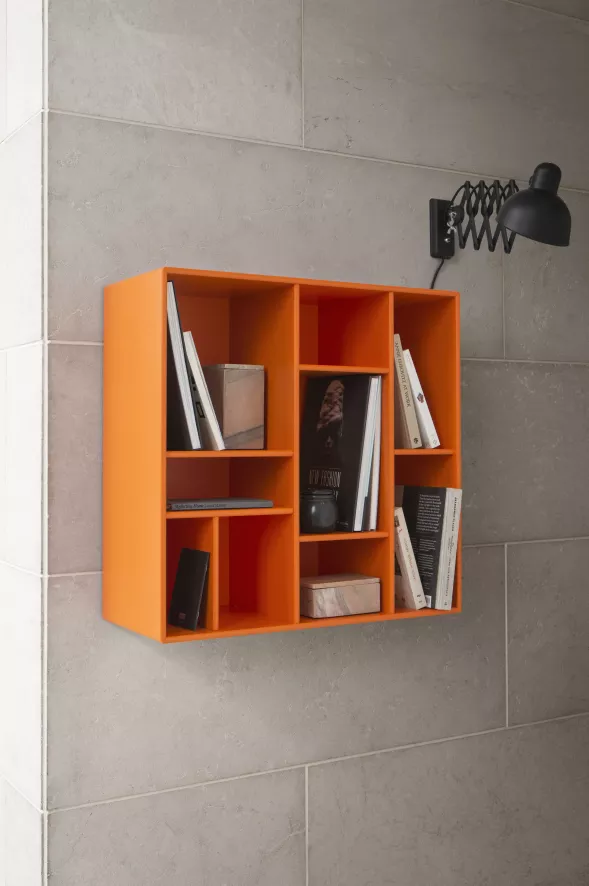 De Compile wandkast van Montana is gemaakt van MDF en heeft negen vakken met verschillende afmetingen. De Compile kast kun je aan de muur bevestigen. De hoogte en breedte van de kast is 69,6 centimeter en de diepte is 30 centimeter. Qua kleur kun je kiezen uit beschikbare 42 kleuren (op aanvraag), keuze genoeg dus.