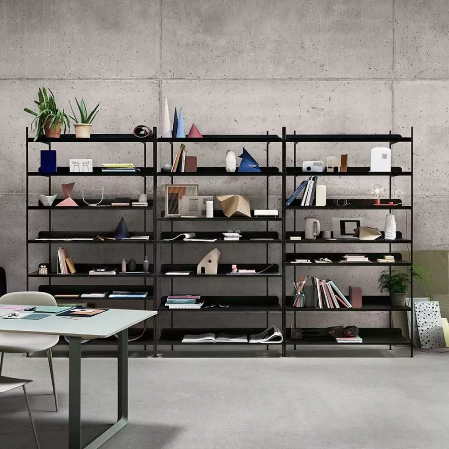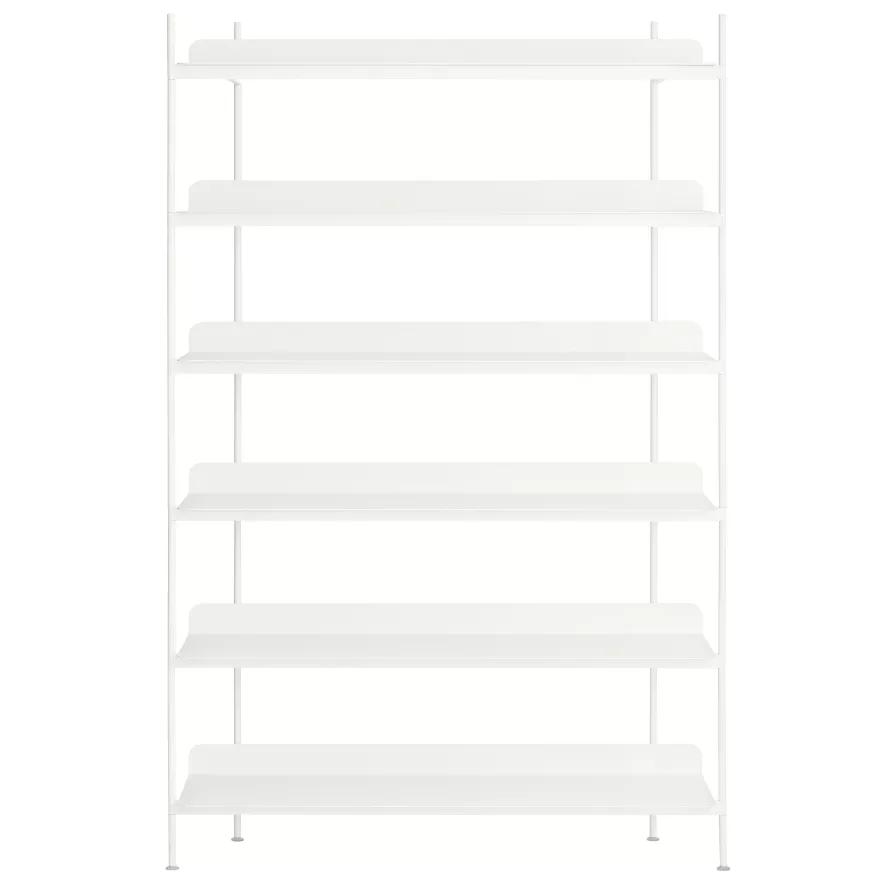 De Compile 4 kast van Muuto heeft een breedte van 121 centimeter, een hoogte van 183 centimeter en een diepte van 42 centimeter. De open kast is gemaakt van gepoedercoat staal. Naast de Compile 4 kast kun je nog kiezen uit 7 andere variaties.