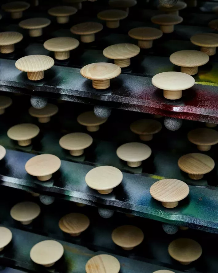 De The Dots haak medium van Muuto is ontworpen door Tveit & Tornøe. De wandhaak heeft een diameter van 13 centimeter en een diepte van 4,4 centimeter. De knoppen zijn gemaakt van eerste klas geolied eikenhout en is verkrijgbaar in verschillende kleuren. De gekleurde versies van de haken zijn gemaakt van geverfd essenhout. Doordat het organisch materiaal is kunnen lichte kleurveranderingen ontstaan.