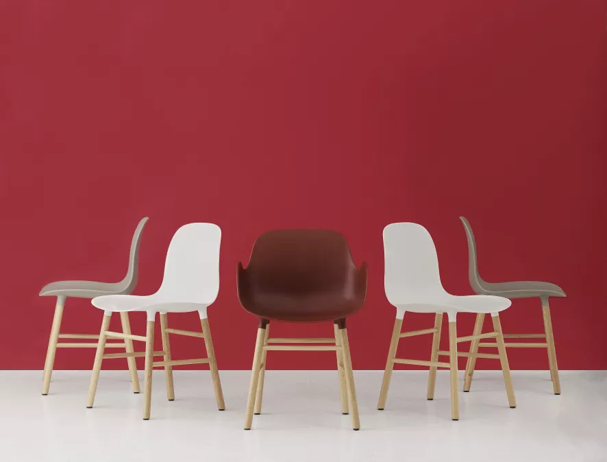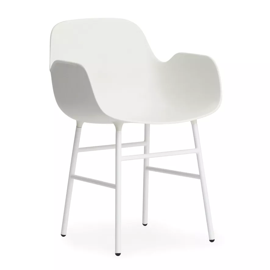 De Normann Copenhagen Form Armchair stoel met stalen onderstel is 56 centimeter breed, 52 centimeter diep en 79,8 centimeter hoog. De zithoogte is 44,2 centimeter en de hoogte van de armleuning is 65 centimeter. De zitting van de stoel is gemaakt van plastic, het onderstel is van gelakt staal. Zowel de zitting als het onderstel zijn leverbaar in verschillende kleuren. Deze stoel is geschikt voor aan de eettafel, maar bijvoorbeeld ook op kantoor of in een zakelijke ruimte.