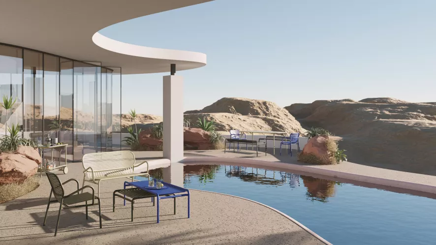 Dit is de Petite Friture Week-end fauteuil buiten.