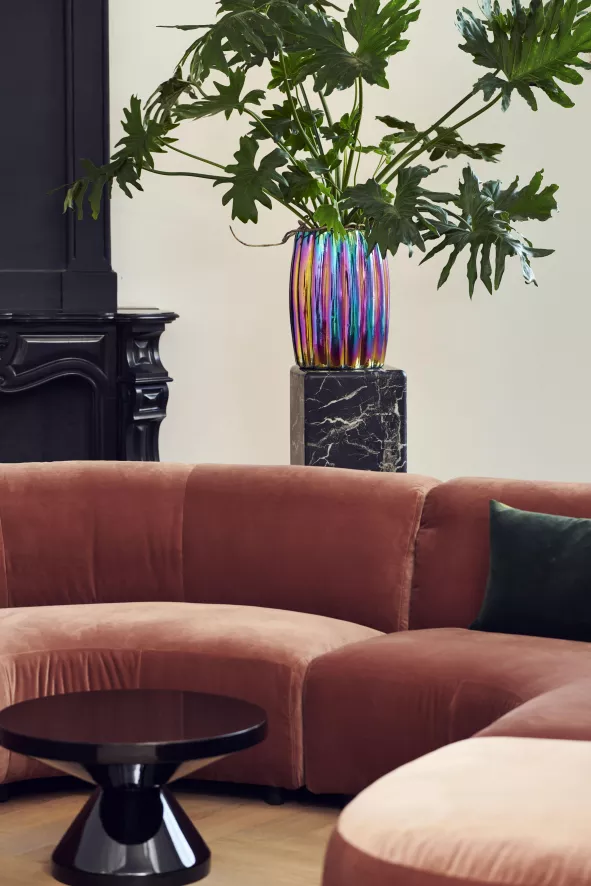 De Oily curvy bloempot van POLSPOTTEN heeft een diameter van 32,5 centimeter en een hoogte van 45 centimeter. Deze bloempot is gemaakt van keramiek en is afgewerkt met een multi-colour glazuur. De Oily Curvy bloempot van POLSPOTTEN is in verschillende uitvoeringen verkrijgbaar.