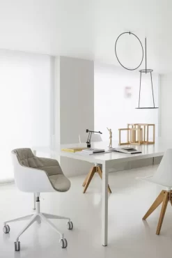 MDF Italia Flow Slim Chair Gestoffeerde Bureaustoel, Wit Onderstel, Witte Kuip, Londra Burgundy