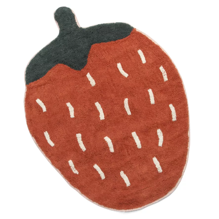 Het Strawberry vloerkleed van Sebra is 110 centimeter lang, 81 centimeter breed en 2 centimeter dik. Het geweven kleed is gemaakt van 100% katoen. Wij adviseren het tapijt alleen door de stomerij te laten schoonmaken, het kleed kan niet in de wasmachine.