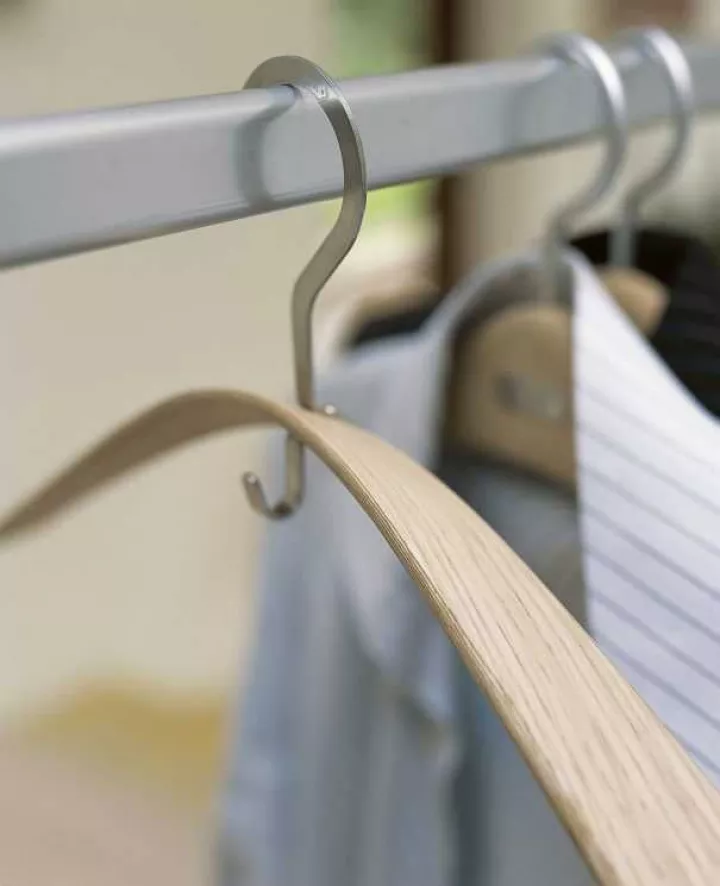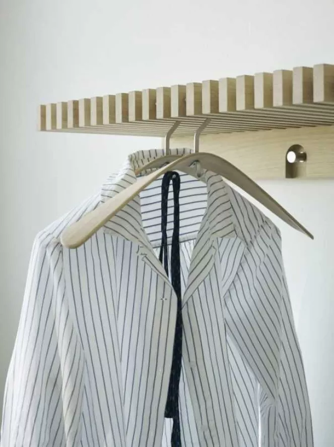 De Skagerak Pilot kleerhanger is 21 centimeter hoog, 43 centimeter breed en 4 centimeter dik. De hanger is gemaakt van eiken- of teakhout en roestvrij staal. Maak het staal schoon met zeepwater en maak droog met een droge doek. Voor het hout een geschikt reinigingsmiddel voor hout gebruiken. De Pilot kleerhanger is verkrijgbaar in de kleuren zwart eikenhout, natuurlijk eikenhout en teakhout. De kleerhanger is ontworpen door Nina Tolstrup.
