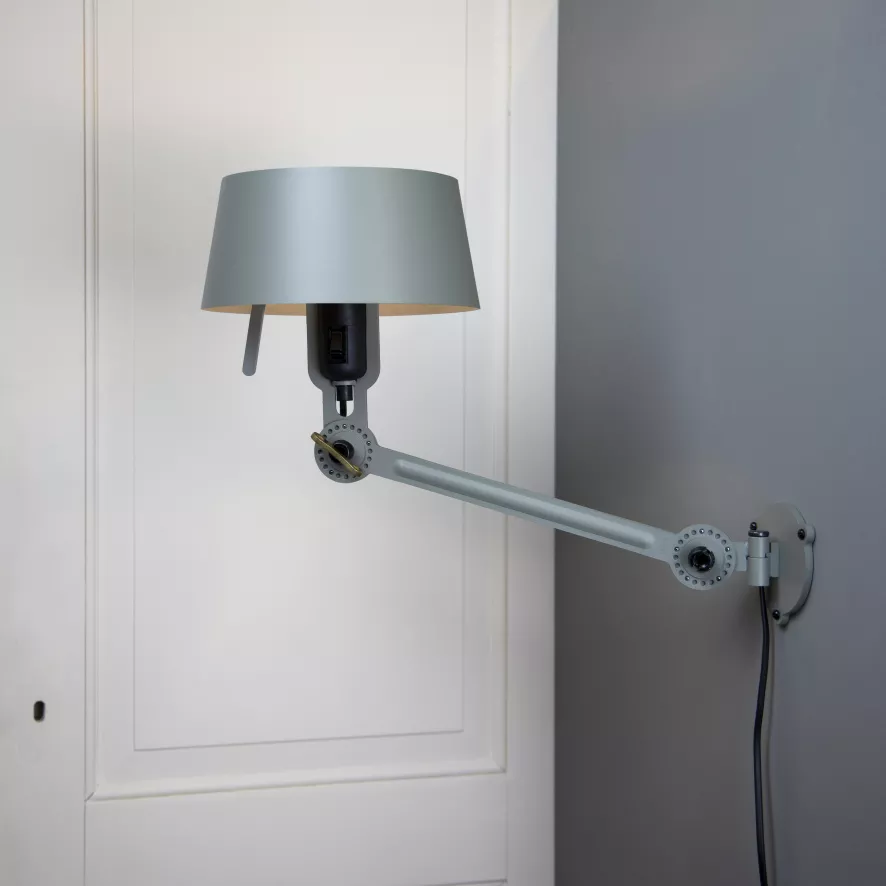 De Bolt Bed Underfit Mirror wandlamp met stekker heeft een totale breedte van 51 centimeter, de verstelbare arm is 29 centimeter breed. Om de arm te stellen wordt er een speciale verstelsleutel van massief messing meegeleverd. De kap heeft een diameter van 22 centimeter en is 10 centimeter hoog. In de kap zit een E27 fitting, geschikt voor een lichtbron van maximaal 60W. De lichtbron wordt niet meegeleverd. Deze variant van de Bolt Bed Underfit wandlamp wordt geleverd met stekker en snoer van 250 centimeter lang. Er is ook een variant zonder stekker beschikbaar. Deze Bolt Bed Underfit Mirror wandlamp met stekker is de gespiegelde versie van de Bolt Bed Underfit wandlamp met stekker van Tonone. Je kunt ze natuurlijk apart gebruiken, maar samen maken ze de perfecte set. De wandlamp is beschikbaar in diverse kleuren. Met de bijpassende wall ring dek je de wandaansluiting mooi af. De wall ring is is op aanvraag beschikbaar in iedere kleur van de Bolt wandlamp.
