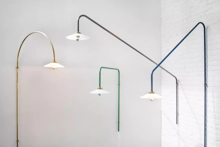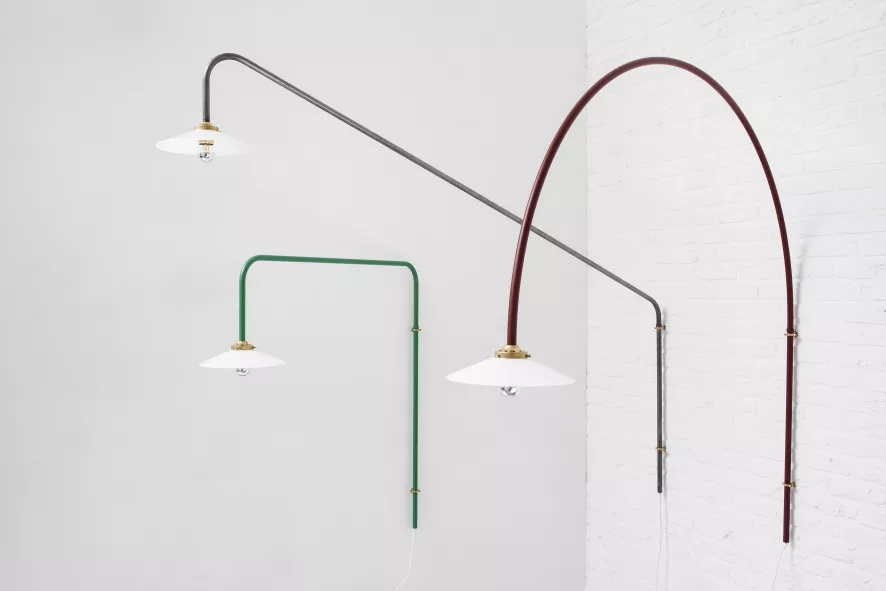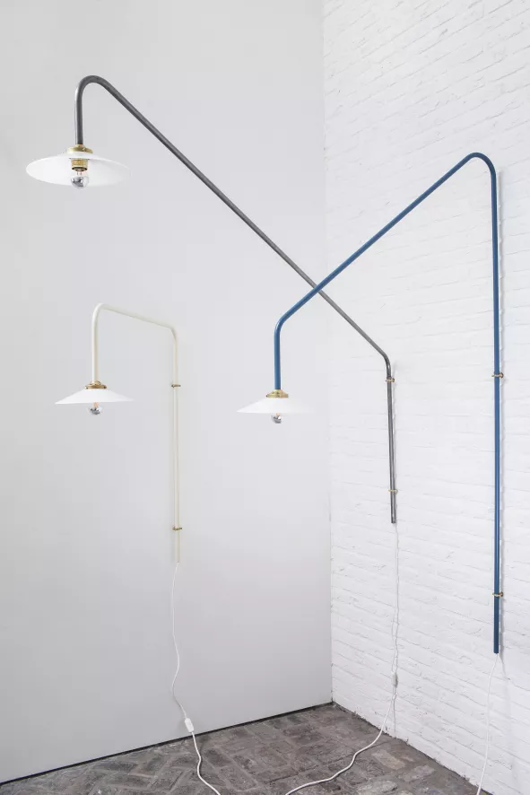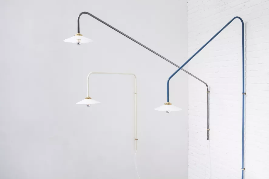 De Hanging Lamp no. 5 wandlamp staal van Valerie Objects is gemaakt van gelakt staal. De lamp is 100 centimeter hoog, en heeft een arm van 90 centimeter. Hij heeft een E27 fitting. De lichtbron wordt niet meegeleverd. De Hanging Lamp no. 5 wandlamp staal van Valerie Objects is verkrijgbaar in verschillende kleuren.
