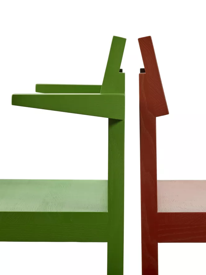 De Silent stoel van Valerie Objects is ontworpen in samenwerking met BIG-GAME. De stoel heeft een breedte van 41 centimeter, een diepte van 44 centimeter en een hoogte van 78 centimeter. De stoel is gemaakt van massief essenhout en gelakt met een verf op waterbasis. De stoel is voorzien van PE-glijdoppen en is verkrijgbaar in verschillende kleuren. Valerie Objects raadt aan de stoel alleen te reinigen met droge of lichtvochtige microvezeldoekjes. Vlekken van fruit, inkt of viltstiften moeten onmiddellijk worden verwijderd, voordat ze de kans krijgen het oppervlak aan te tasten. Als een vochtige doek niet voldoende is voor het verwijderen van de vlek, kan je een milde zeepoplossing gebruiken.