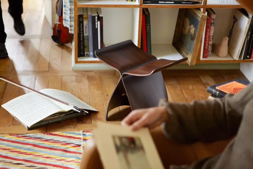 De Butterfly kruk is 42 centimeter breed en 39 centimeter hoog. De kruk is verkrijgbaar in gevormd multiplex van esdoornhout met natuurlijke afwerking (afkomstig uit Duitsland/Frankrijk) of santos-palissander (afkomstig uit Bolivia), messing beslag.