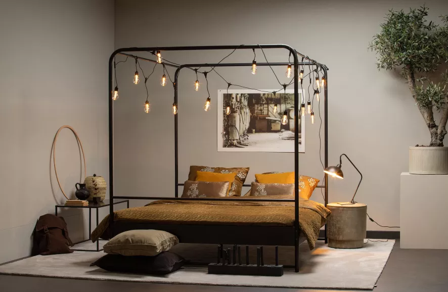 Het Bunk bed 160×200 van vtwonen is een zwart hemelbed voor twee personen. Het bed heeft een lengte van 206 centimeter, een breedte van 165 centimeter en een hoogte van 190 centimeter. Het matras heeft een lengte van 200 centimeter en een breedte van 90 centimeter. Het tweepersoonsbed heeft een zwart metalen frame. Het hemelbed wordt geleverd inclusief lattenbodem.