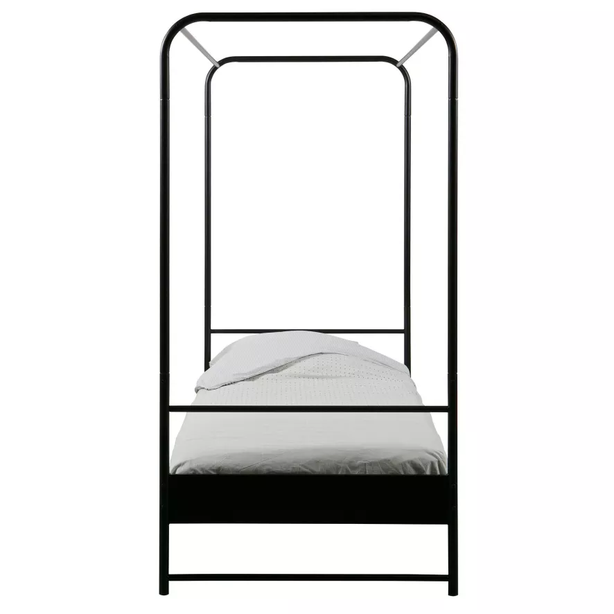 Het Bunk bed 90×200 van vtwonen is een zwart hemelbed voor één persoon. Het bed heeft een lengte van 206 centimeter, een breedte van 95 centimeter en een hoogte van 190 centimeter. Het matras heeft een lengte van 200 centimeter en een breedte van 90 centimeter. Het eenpersoonsbed heeft een zwart metalen frame. Het hemelbed wordt geleverd inclusief lattenbodem.