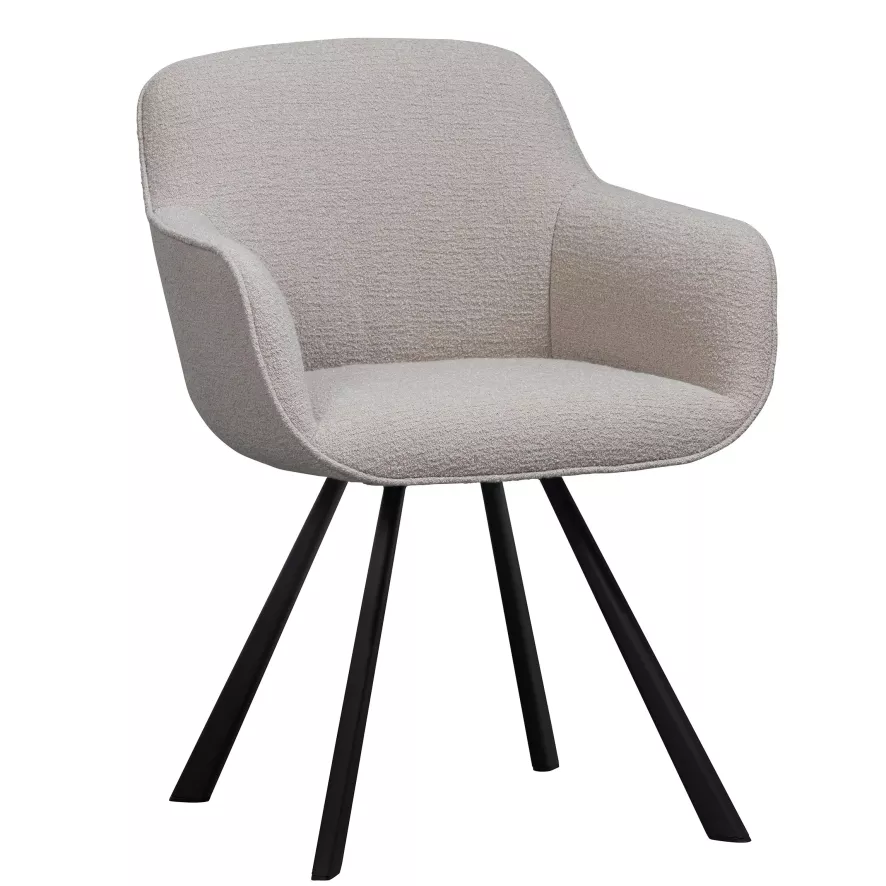 De Juno eetkamerstoel van WOOOD heeft een breedte van 58 centimeter, een diepte van 58 centimeter en een hoogte van 79 centimeter. De zitbreedte bedraagt 44 centimeter, de zitdiepte bedraagt 42 centimeter en de zithoogte bedraagt 49 centimeter. De rugleuning is – vanaf de zitting – 35 centimeter hoog en de armleuningen zijn vanaf de grond gemeten 64 centimeter hoog. De stoel heeft een maximale draagkracht van 120 kilogram. De eetkamerstoel heeft een vierpotig, metalen onderstel dat met een zwarte poedercoat is afgewerkt en een zitkuip van kunststof. De zitkuip is opgevuld met schuim en bekleed met slijtvaste bouclé stof. Wij adviseren eventuele vlekken direct droog te dekken met een schone doek of tissue. De meeste vloeistoffen zijn te verwijderen met lauw water. De Juno eetkamerstoel is verkrijgbaar in verschillende kleuren.