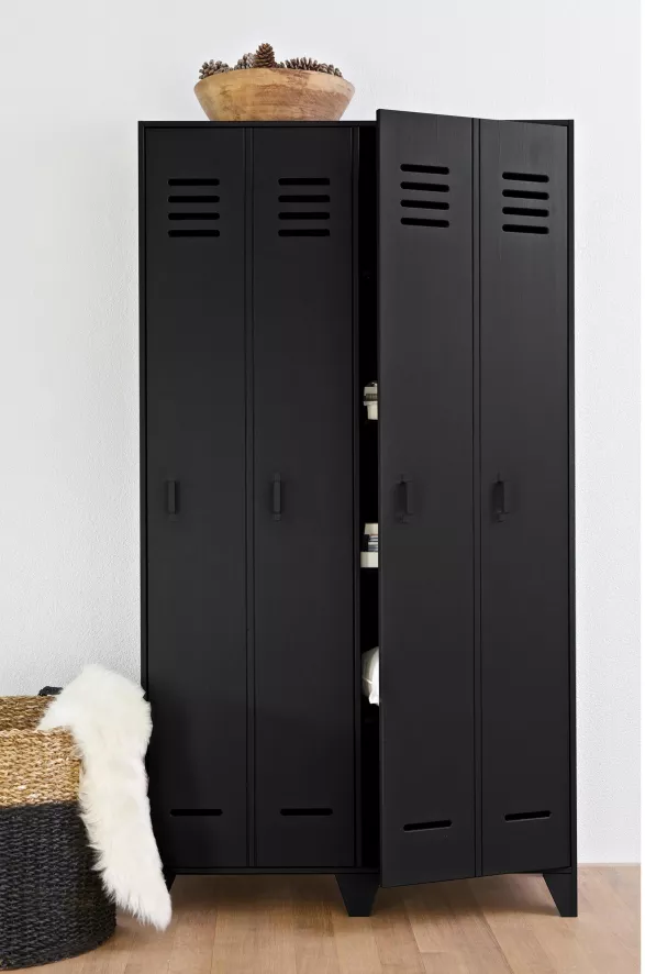 De Stijnkledingkast 2-deurs van Woood is 187 centimeter hoog, 103 centimeter breed en 40 centimeter diep. De kast is gemaakt van FSC-gecertificeerd grenenhout en is verkrijgbaar in verschillende kleurtinten.