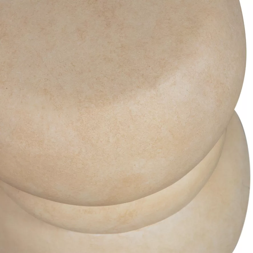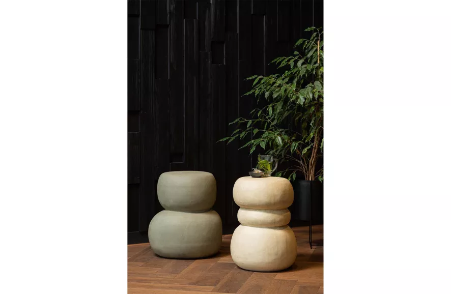 De Yvo bijzettafel van WOOOD heeft een organische vorm en een neutrale aardse tint. De tafel heeft een lengte van 37 centimeter, een breedte van 35 centimeter en een hoogte van 47 centimeter. Het tafeltje heeft een gewicht van 11 kilogram en een draaggewicht van 20 kilogram. De koffietafel is gemaakt van fiberclay, een samenstelling van glasvezel en klei. De bijzettafel is geschikt voor binnen en buiten gebruik, maar Woood adviseert het meubel het hele jaar rond te beschermen tegen de regen en de nacht. De tafel is schoon te maken met een zachte borstel en een neutraal sopje.