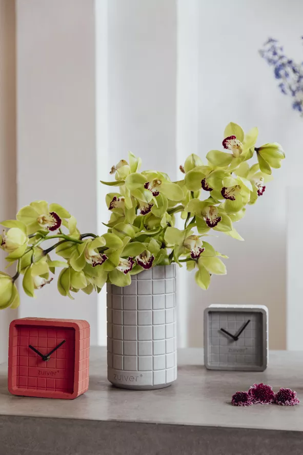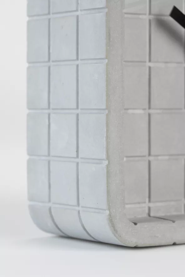 De Cute klok beton van Zuiver heeft een breedte van 15 centimeter, een lengte van 6 centimeter en een hoogte van 15 centimeter. De klok heeft een diepte van 5,7 centimeter en een gewicht van 0,90 kilogram. Deze klok is gemaakt van beton en heeft wijzers van zwartgeverfd aluminium. De benodigde AA-batterijen worden niet meegeleverd. De Cute klok beton van Zuiver mag alleen binnenshuis gebruikt worden.